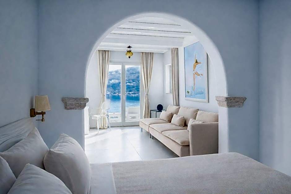 Fitted with a terrace or balcony overlooking the Aegean Sea, this spacious suite includes a spa bath, living room and queen size bed. It also offers an iPod Docking station.